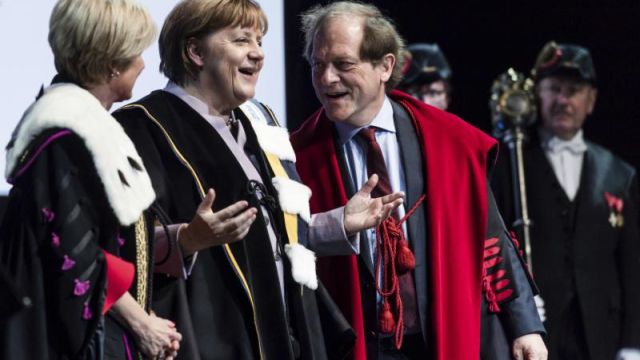1月12日,德国总理默克尔获得比利时根特大学以及天主教鲁汶大学共同授予的联合荣誉博士学位,表彰她在移民问题上作出的贡献。