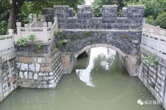 “十字加环”成格局![]() 西水关现貌 嘉定的城墙始筑于首任知县高衍孙上任后的第二年,即宋嘉定十二年(1219)。起初仅为土城,历经百年沧桑后,土城已渐溃败。 元至正十八年(1358)为战争防御需要,太尉张士诚遣派将官呂珍到嘉定,改用砖石修砌城墙,并加宽了外城河,嘉定城墙的周长增至1694丈,高1.5丈,基宽4丈,顶宽3丈。 设有四个城门,分别是东门“宴海”,西门“合浦”,南门“澄江”,北门“朝京”(后改为“观潮”);另设了东、西、南三水关。外城河距城墙5丈,河面宽13丈,底宽8丈,深1丈;内城河的河面宽2丈,底宽丈二,深半丈许,嘉定城也就成为“十字加环”的格局。 ![]()
