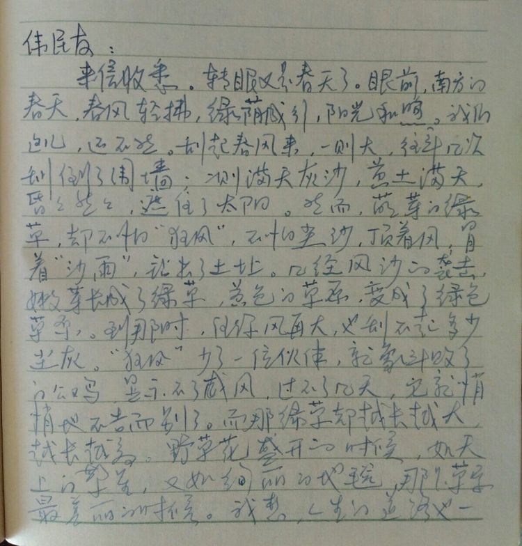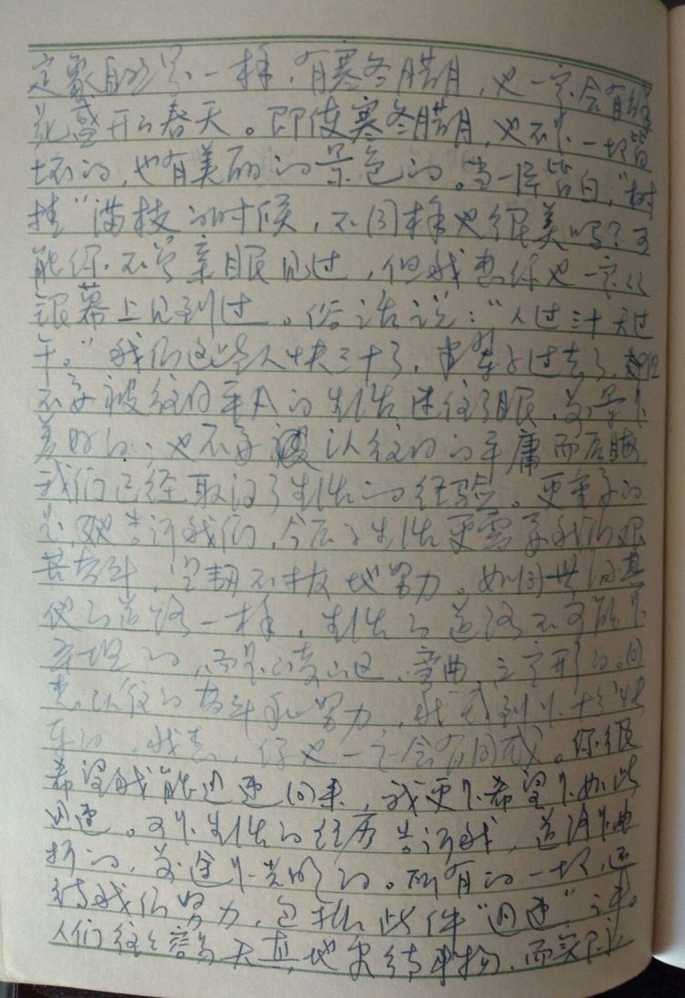 ![]() 近期,整理老照片旧笔记本,发现了我知青生涯的最后一封书信。寄出这封信的二、三个月后,我病退的申请获得了批准,大概在1977年7月返回上海。写这封信的时候,我正迷惘之中:两年前提交的病退申请一直未批下来,能否批准,一直是颗悬着的心;而如果回到上海,工作安排也是惘然一片,是一颗不安的心。二年间,回上海住了二个月(探亲假12天加全年节假日星期日的加班调休56天),再回到厂里,似乎感到还是应该回到上海去,在耐心等待病退批准的期间写了此信。 黑龙江大庆地区每年四月,时有沙尘暴发生。西南风一刮,吹干了积雪,而青草尚未长成,沙尘自然被刮起来了,昏天暗地在外无法行走。 此文无意中总结了八年知青生涯,憧憬了知青后生活,是我人生的又一个转折点。 伟民是我同班同学,1966年夏回到家乡插队落户。 伟民友: 来信收悉。转眼又是春天了。眼前(下)南方的春天,春风轻拂、绿荫成行、阳光和煦。我们这儿还不然,刮起春风来,一则大,往年几次刮倒了围墙;二则满天灰沙、黄土满天、昏昏然然,遮住了太阳。然而,萌芽的绿草却不怕“狂风”,不怕尘沙,顶着风冒着“沙雨”,钻出了土壤。几经风沙的袭击,嫩芽长成了绿草,黄色的草原(原野)变成了绿色的草原。到那时,任你风再大也刮不起多少尘灰。“狂风”少了一位伙伴,就像斗败了的公鸡,显示不了威风,过不了几天,它就悄悄地不告而别了;而那绿草却越长越大、越长越高。野花盛开的时候,(尤)如天上的繁星,又如绚丽的地毯,那是草原最美丽的时候。我想,人生道路也一 定像自然界一样,有寒冬腊月,也一定会有鲜花盛开的春天。即使寒冬腊月,也不是一切皆坏(丑)的,也有美丽的景色的。当一片皆白“树挂”满枝的时候,不同样也很美吗?可能你不曾亲眼见过,但我想你也一定从银幕上见过。俗话说:“人过三十天过午”,我们这些人快三十了,半辈子(快)过去了,但不要被往日平凡的生活迷住了眼,前景是美好的;也不要(因)以往的平庸而后悔,我们已经取得了生活的经验。更重要的是她告诉我们,今后的生活更需要我们艰苦奋斗、坚韧不拔地努力。如同世间其他的道路一样,生活的道路不可能是平坦的,而是崎岖、弯曲、之字形的。回想以往的奋斗和努力,我感到是十分快乐的。我想,你也一定会有同感。你很希望我能迅速回来,我更是希望是如此迅速。可是生活的经历告诉我,道路是曲折的,前途是光明的。所以的一切,还待我们努力,包括此件“迅速”之事。人们往往容易天真地看待事物,而实际又往往出于人们的意料之外,原因也是在此。所以既不必天真地估计未来,更不必悲伤地回忆往事,抛掉天真和悲伤,欢乐的生活就在眼前了。 啰啰嗦嗦,写了以上几段话,如能起到抛砖引玉之功,我也就心满意足了。 顺祝 全家安好! 友:仲平 77.4.29.晚 ![]() ![]() ![]() (责任编辑:晓歌) |