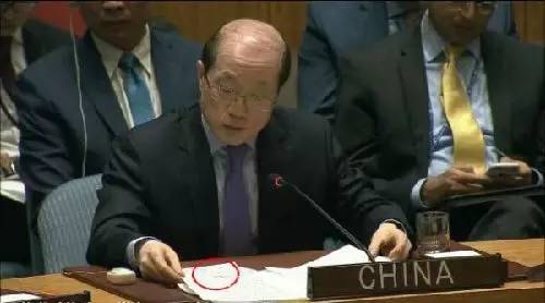 ▲刘结一代表在会议中举手表决。(中国常驻联合国代表团官网) 刘结一在发言中是这样回应的: “中国在化学武器问题上的立场是明确、一贯的。我们坚决反对任何国家、任何组织、任何人在任何情况下使用化武, 坚决主张惩处任何使用化武的行为。中国本身就曾是别国使用化武的受害者,中国比任何国家都有权表达对使用化武的谴责。” “我们都记得,某些国家曾以所谓‘拥有大规模杀伤性武器’为借口发动战争,给中东国家造成巨大灾难,直到今天这些中东国家仍受战争后遗症影响。历史的经验教训必须汲取,否则难免重蹈覆辙。安理会刚刚表决的决议草案基于各方仍存分歧的调查结论,且在安理会成员严重分歧情况下强行付诸表决,此举无助于解决叙利亚化武问题,无助于推进日内瓦和谈和叙利亚问题的政治解决进程。” 除了“要坚持政治解决叙利亚问题的大方向”这样的一贯立场,刘结一还在发言中指出,“无端歪曲、攻击其他成员国庄严立场的做法,是极不负责任和荒谬的。这恰恰表明有关国家理屈词穷、别有用心。” 参考消息网-锐参考注意到,刘结一几次脱稿发言。他有三张发言纸,第一张上似乎有临时写稿的痕迹。当刘结一已经表达完第三张稿纸上的内容后,只见他又拿起了第一张稿纸,继续陈词。