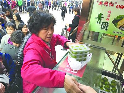 青团上市季,沪上老字号关于“网红”产品创新的PK战也已打响……除了去年走红的咸蛋黄肉松青团今年依然热卖外,新雅粤菜馆今年在青团馅中放入腌笃鲜,让青团也“鲜掉眉毛”。不仅如此,王家沙、沈大成、真老大房、大壶春等的青团也在热销当中。 咬一口涌出一汪汤汁 在今年诸多的新品中,最亮眼并成功跻身新“网红”的要数新雅粤菜馆推出的腌笃鲜青团了。昨天上午,南京东路新雅粤菜馆门口就排起长队,即使规定了每人限购两盒(每盒6只装,6元一只),排队也要1-1.5个小时。 据介绍,腌笃鲜青团是一款必须趁热吃的青团,因为糯米做的青团能锁住汤汁,因此腌笃鲜青团也成了一款很特别的有汤汁的青团,一口咬下去会涌出一汪汤汁来。 新雅粤菜馆相关负责人表示,腌笃鲜青团目前每天从9点开售,一般到下午2、3点售罄,以零售为主,团购相对少。保守估计现在的日销量在5000只左右。随着清明节的临近,新雅点心部也将组织人手加大产量,估计清明前期高峰时段的日销售量会在万只左右。 咸蛋黄肉松青团依然热卖 去年,杏花楼咸蛋黄肉松青团意外走红,最长排队时间达到8小时。今年一开卖,杏花楼门前又排起长队,不过,从去年每人限购6盒到如今每人限购2盒,排队速度已经大大加快,一般1-2小时就能买到。 杏花楼相关人士介绍,目前咸蛋黄肉松青团依旧是限量供应,福州路总店、黄河路店、莘庄店三家每天各供应3万多只,预计到3月中旬,这款青团的产量有望提升到每天5万只。 今年青团销售将延长1个月 自去年成为“网红”青团后,由于配料可复制性强,王家沙、真老大房、沧浪亭、沈大成、大壶春等今年也推出了咸蛋黄肉松青团。 同样是咸蛋黄肉松青团,口味依然有差异。该款青团的爱好者、白领孙小姐就品尝过多家老字号的产品,“杏花楼的‘网红青团’,皮很薄,馅料很足,它家的咸蛋黄放得最多,是最有蛋黄味的。王家沙的特色是皮子,它家的咸蛋黄肉松青团是艾叶青团,不太咸,里面还有松仁。沈大成把蛋黄碾成蓉和肉松完全合为一体,皮也很薄,口味偏甜。” 尽管各家老字号都出了同款“网红”馅,但其实在青团上各有“杀手锏”。杏花楼主打最知名的咸蛋黄肉松青团;新雅今年新推的腌笃鲜青团也是来势汹汹;王家沙的马兰头青团,在咸味青团中独具特色,拥有众多“粉丝”;沈大成的最受欢迎的还是经典甜味细沙青团……