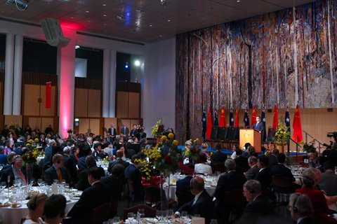细节3:“飞机穿云”与“友谊前进” 特恩布尔总理曾在中国经商,他年幼的孙女也已经学会了中文。 “就在昨天,我的孙女指着墙上的一幅画用中文说是‘鱼’,然后又很体贴地为我翻译成英文‘fish’。”特恩布尔在致辞中说,“不过我孙女还不到两岁,今天还不能来这里翻译,所以我们只能依靠李总理和程女士‘特别好’的英文来进行沟通。” 特恩布尔随后列举了澳中两国在科技创新、文化、教育、旅游等领域的合作进展。反对党领袖肖顿也在致辞中回顾了中澳建交的历史。李克强则更加巧妙地宣示了对中澳关系的期待。 “昨晚我和夫人即将抵达堪培拉的时候,我们的飞机穿过了厚厚的云层,两侧还能看到闪电。但我们一直在前进。”李克强意味深长地说,“我们对中澳友谊前进、前进、再前进,始终抱有坚定的信念。” 细节4:“贸易逆差”与“扩大开放” 特恩布尔在致辞中列举了中澳经贸合作的一组数据:在中澳自贸协定生效1年多后,澳大利亚对华葡萄酒出口上升了38%,鲜橙出口上升了36%,护肤品出口上升了82%,鲍鱼出口翻了一番,澳大利亚龙虾出口更是翻了两番,中国与澳大利亚双边贸易额已经突破了1000亿美元。 “一位酒商告诉我,在他39年的经商历程中,中澳自贸协定是一项最重要的政策进展。”特恩布尔说。 李克强在随后的演讲中补充了另一个数字:2016年,中国对澳大利亚的贸易逆差接近500亿美元。“我们当然不希望看到贸易不平衡,但我们坚信,解决贸易不平衡要通过扩大贸易,而不能关起门来。”李总理说。 他随即宣布,中澳将在服务贸易和投资方面继续扩大自贸合作,还要进口更多冰鲜牛肉等质优价廉的农产品。 “虽然今天我没有吃到澳大利亚的牛肉,但这不会动摇我们扩大开放的决心。”在全场的笑声和掌声中,李克强接着说,“我们就是要给中国消费者更多选择,也在竞争与合作中提高中国农业的水平。世界各国都应该这么做,这样才能发挥比较优势,在和平竞争中实现共赢。”