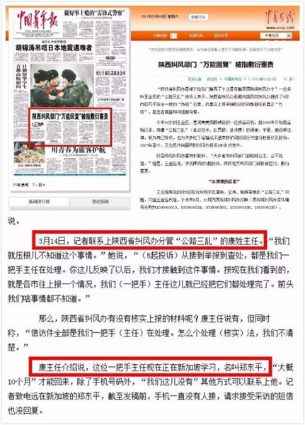 △《中国纪检监察报》截图 乍看起来,这又是一个因公款吃喝而东窗事发的案例。但当事人竟然是纪检组长,这还是吓得政知局(微信ID:bqzhengzhiju)吃了一鲸(惊),想必其中有文章。 处理信访案件时使用万能回复 目前,经陕西省纪委常委会研究并报省委常委会审议通过,给予郑东平党内严重警告处分,免去现任职务,调离纪检监察系统,责令其退赔相关费用;给予杨锦党内严重警告处分,免去现任职务,调离省委办公厅。给予其他8名干部党内警告处分,1名干部批评教育。 作为省纪委驻省办公厅的纪检组长,本应对中央的“八项规定”十分清楚,而这个纪检组长却带头违反“八项规定”,与“打铁还需自身硬”背道而驰。除了带头违纪以外,政知局(微信ID:bqzhengzhiju)还了解到,早在2011年,郑东平便被指是“连国务院都敢糊弄的干部”。 据《中国青年报》报道,从2007年开始,一位货运司机通过信件向国务院纠风办投诉陕西多地的“公路三乱”(乱设站卡、乱罚款、乱收费)问题。按照程序,国务院纠风办将投诉信批转给陕西省纠风办。随后,陕西省纠风办向国务院纠风办提交了对这5起投诉的答复。 令投诉代理人颇感意外的是,5个答复除了开头的督促单位不同外,正文内容如出一辙,都是“对投诉的问题进行调查核实,并与举报当事人进行了沟通协调,妥善进行了办结处理”。 但是,投诉代理人和所有当事司机均表示,从来没有接到过陕西纠风部门的任何调查核实的电话。“他们没搭理我,我根本不清楚问题是怎么处理的,怎么能说是已经‘办结’呢?”他们认为,这些“万能回复”的内容存在着“赤裸裸的造假”。 当时,陕西省纠风办分管“公路三乱”的康姓主任在接受中青报采访时表示:“信访件全部是我们一把手(主任)在处理”,这位康姓主任还透露,一把手叫郑东平,正在新加坡学习。