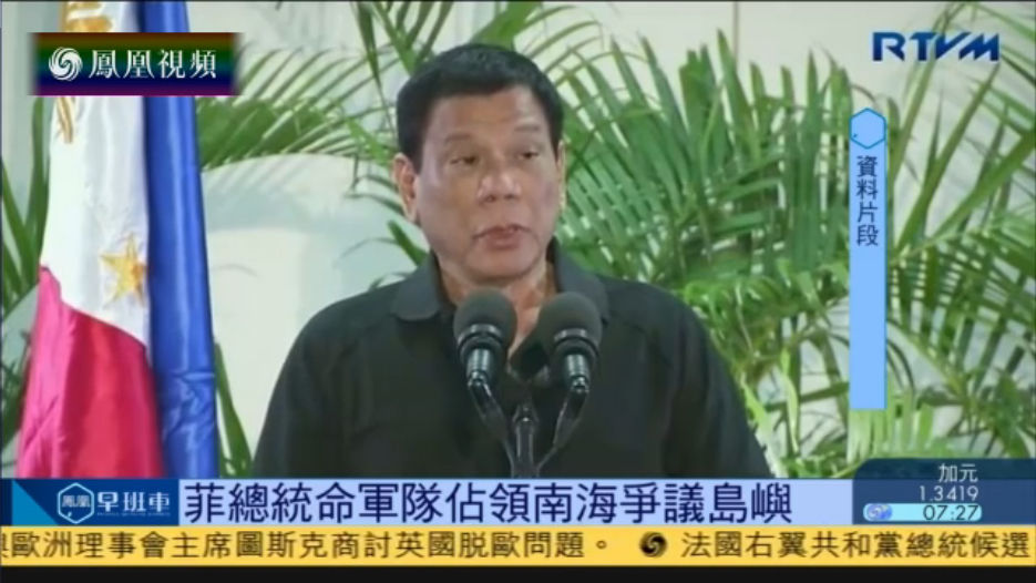 菲总统声称已命令军队占领南海争议岛屿 并将登岛