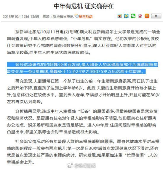 近日,新华社旗下的《新华每日电讯》一篇文章被热传:“中年危机,确实存在”。原因是中年人上有老、下有小,工作与生活的压力带来双重焦虑。