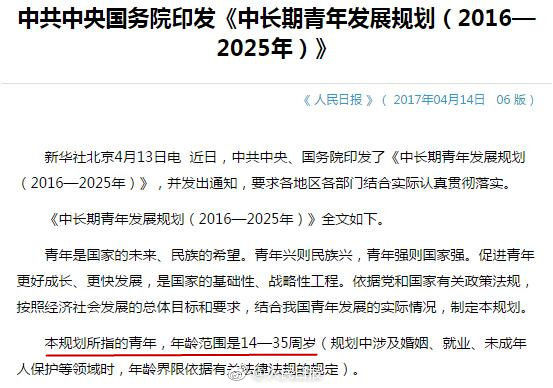 “88年的中年女子”? 92年出生已经算“中年人”? NO! 最新的权威说法来了!根据中共中央、国务院近日印发的《中长期青年发展规划(2016—2025年)》,所指的青年年龄范围是14—35周岁。 掐指一算,哇~1982年生的都还算青年哦!!