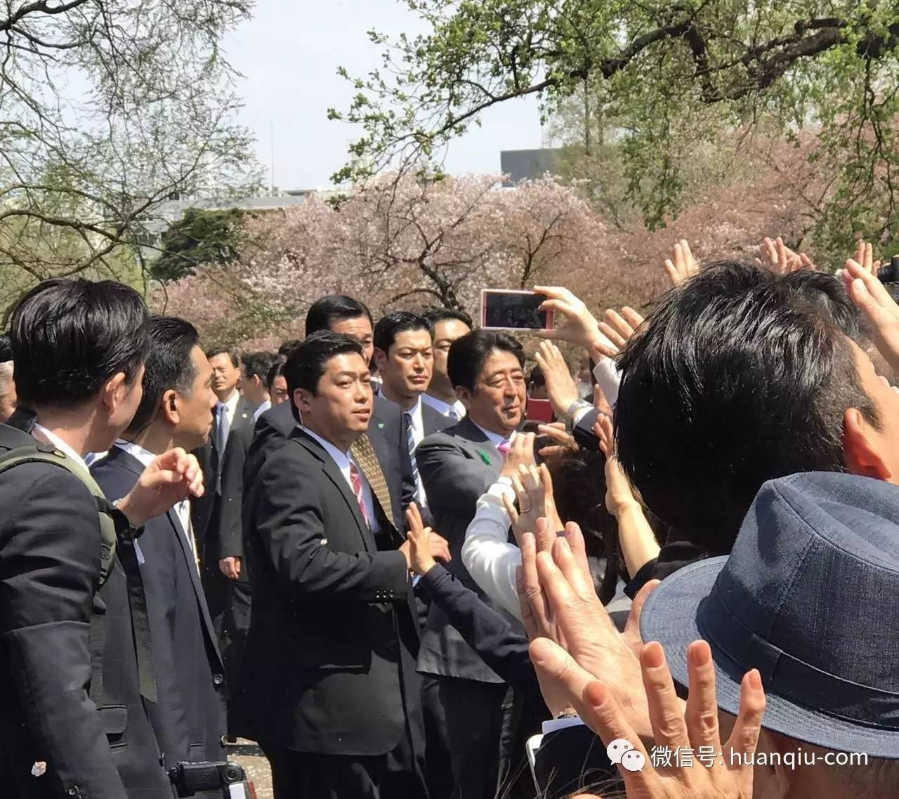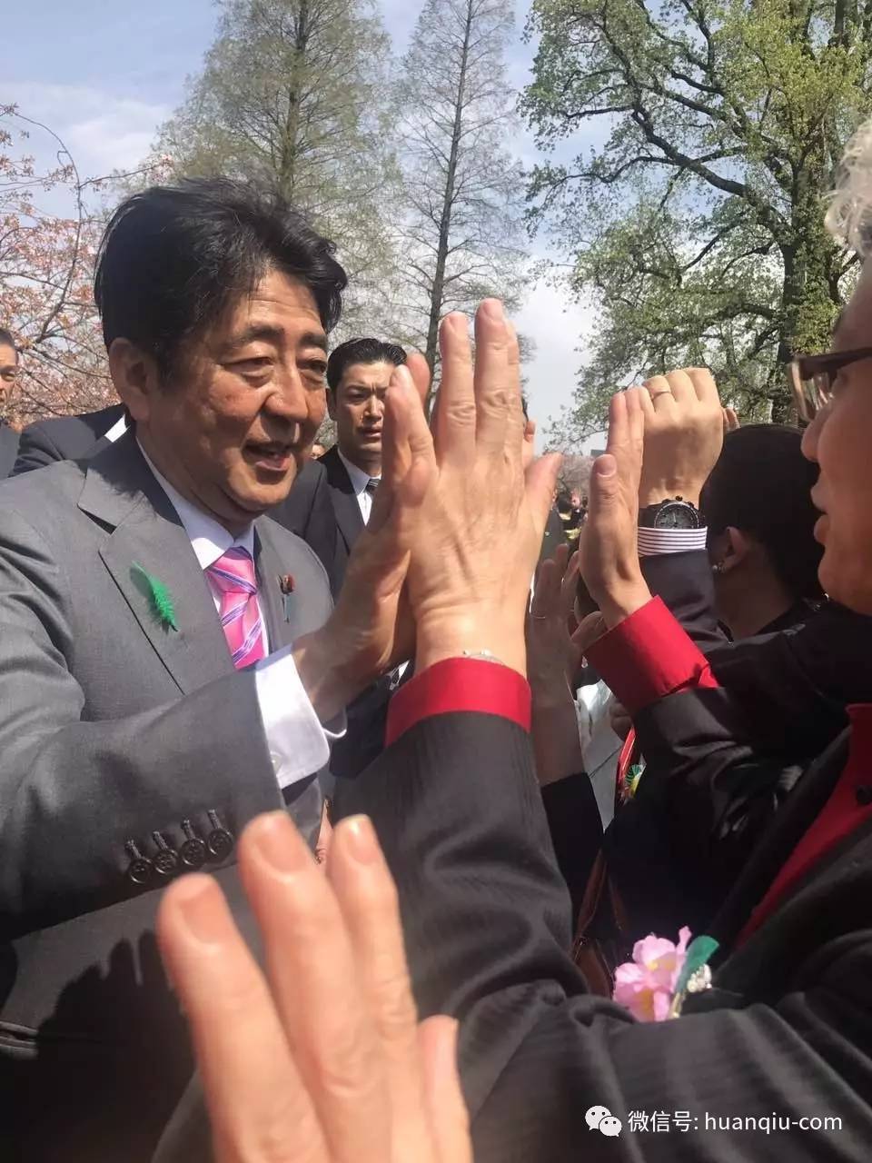安倍晋三呢,对此也不回避,或者说无法回避了。他在“赏樱会”上致辞说: “今天虽然刮着强烈的逆风,但我们自民党和公明党的联合政权是一个能够经受得风雪的政权。我这里通常都是逆风横行的,但安倍政权已经忍耐风雪走过5年的时光。特别是今年的前半年,我真的感受到一种对风雪的忍耐。” 接着,他即席朗诵了自己做的一首俳句,“逆风横雨中,忍耐坚韧五年行,犹如八重樱”。听到这里,几乎全场的人都笑了。或许,在安倍晋三看来,他已经闯过了“拿地门”难关;或许,安倍晋三知道舆情调查显示,有68%的受访者不满意他在国会上针对“拿地门”的答辩,他要在这里再次给自己“洗白”。 与在其他公共场合一样,安倍晋三总是不会忘记“王婆卖瓜——自卖自夸”的。他说: “我就是一个‘晴天男’,走到哪里,哪里就会出现晴天。现在,就像樱花一路北上在全国陆续绽放一样,我们实现了15年间所未有的工资上涨。今年比去年还会好的。让景气恢复的暖风进入全国各个地方,这是我的使命。我一定要强力推进地方再生。” 这时,一位日本朋友告诉我:“每次出现在百姓面前的时候,安倍就喜欢宣传‘安倍经济学’。每次回到总理官邸以后,安倍就拼命推行‘安倍军事学’。” “赏樱会”例行项目之一是安倍晋三绕场一周,与新宿御苑内的客人见面。这时,工作人员就会事先与沿途游客打招呼,“因为时间的关系,大家不要与首相握手,见面时可以相互击掌示意。”应该说,这的确是一个提高效率的好方法。