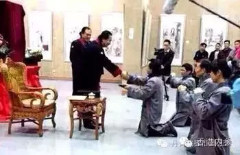 (图为书画学员正在向中国国家画院院长杨晓阳行跪拜礼)