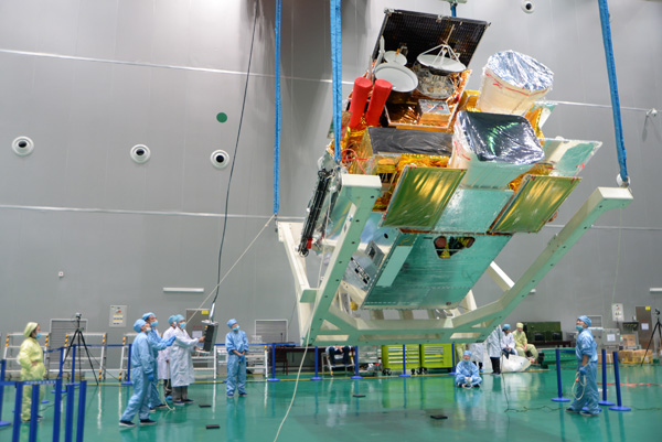 风云四号气象卫星起吊现场。本文图片均由中国航天科技集团公司上海航天技术研究院提供