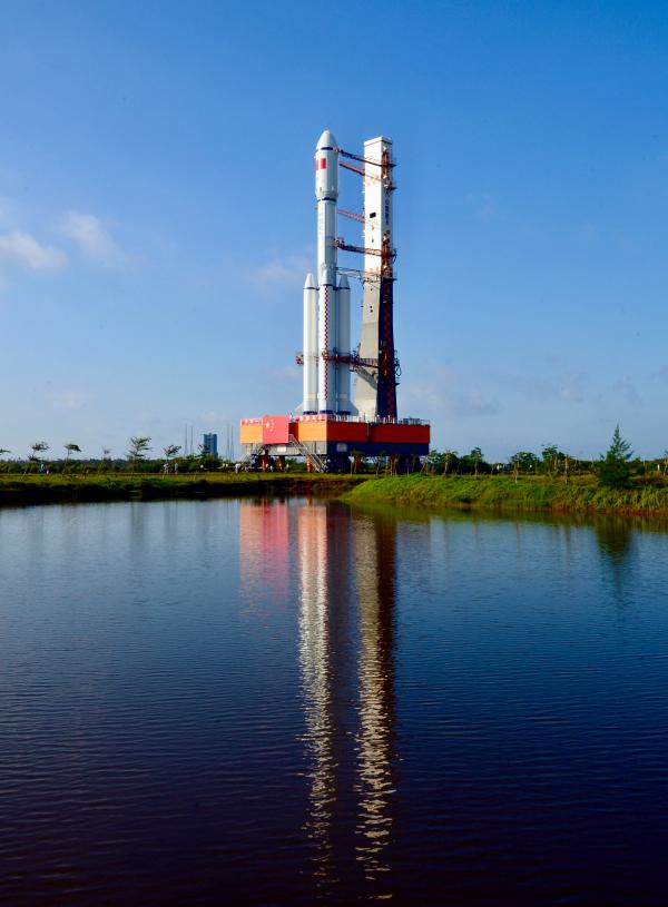 4月17日上午,海南文昌,承载着长征七号遥二运载火箭与天舟一号货运飞船组合体的活动发射平台。