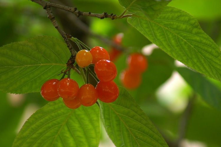 过了不久,花朵飘落了,果实却在孕育之中。到了四月下旬,果子开成熟,红红的樱桃便缀满了枝头,诱人得很。