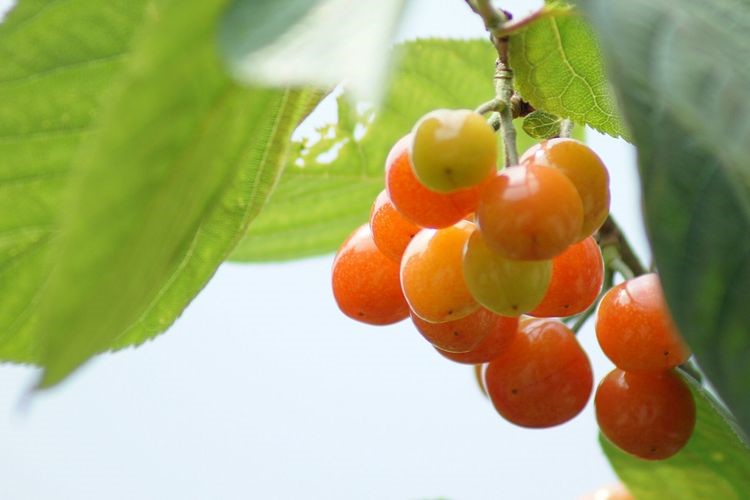 红红的樱桃当然会吸引馋嘴的鸟儿,这可是它们的美味佳肴。可恨的是竟然也诱来了贪嘴的人儿,老的小的,男的女的,全然不顾别人鄙视的目光,把树技拼命往下拉的,攀上树叉上的,全不管樱桃树的感受,把红红的果子成串地捋下。