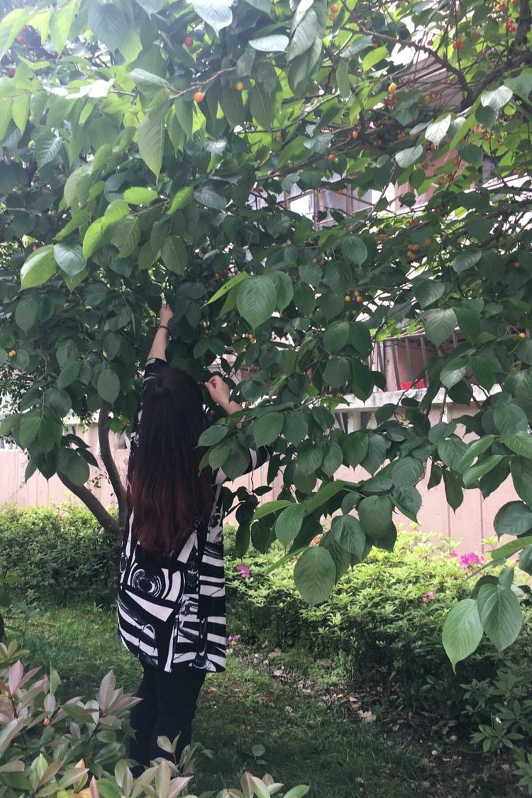 还有的女孩子,完全丟去了平日里羞涩之情,边摘边往嘴里塞。有的老的还带着孩子来摘,不晓得自己是在给孩子做什么榜样。