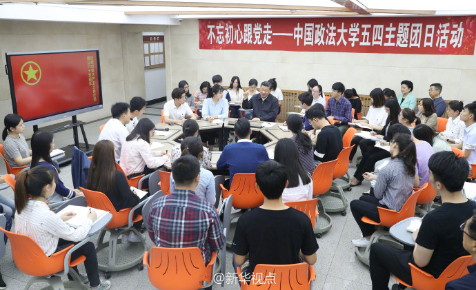 习近平在中国政法大学考察时强调 立德树人德法兼修抓好法治人才培养 励志勤学刻苦磨炼促进青年成长进步 新华社北京5月3日电 在五四青年节来临之际,在中国政法大学建校65周年前夕,中共中央总书记、国家主席、中央军委主席习近平3日上午来到中国政法大学考察。习近平代表党中央,向全国各族青年致以节日的问候,向全国广大教育工作者、青年工作者、法治工作者致以诚挚的问候。他强调,全面推进依法治国是一项长期而重大的历史任务,要坚持中国特色社会主义法治道路,坚持以马克思主义法学思想和中国特色社会主义法治理论为指导,立德树人,德法兼修,培养大批高素质法治人才。 习近平强调,中国的未来属于青年,中华民族的未来也属于青年。青年一代的理想信念、精神状态、综合素质,是一个国家发展活力的重要体现,也是一个国家核心竞争力的重要因素。当今中国最鲜明的时代主题,就是实现“两个一百年”奋斗目标、实现中华民族伟大复兴的中国梦。当代青年要树立与这个时代主题同心同向的理想信念,勇于担当这个时代赋予的历史责任,励志勤学、刻苦磨炼,在激情奋斗中绽放青春光芒、健康成长进步。 中国政法大学是我国一所著名高等学府,成立于1952年,以“厚德、明法、格物、致公”为校训,长期以来为国家培养了大批法治人才。 暮春时节,位于北京市昌平区的中国政法大学校园内满目青葱、一派生机。上午9时20分,习近平在校党委书记石亚军、校长黄进陪同下,首先来到逸夫楼一层大厅,参观校史及成果展。一张张图片,一件件实物,见证了几代党和国家领导人对中国政法大学和中国法治建设的关心和支持,展示了中国政法大学的发展历程,习近平不时驻足观看,询问有关情况。他对中国政法大学在人才培养、学术研究、社会服务、文化传承、国际交流合作、特色课程教育等方面取得的成就表示肯定,希望学校总结经验、改革创新,更好整合资源,更好找准着力点,把教学、科研、育人各项工作做得更好。 在展厅内,总书记亲切会见了张晋藩、廉希圣、李德顺、王卫国、卞建林等几位资深教授,同他们一一握手,亲切交谈。参与新中国法治进程的教授们讲述了他们对法治精神和治学方法的思考,习近平感谢他们为法治理论研究和法治人才培养作出的贡献,希望他们继续贡献才智,祝他们生活愉快、身体健康。参观结束时,习近平同中国政法大学领导班子成员和几位教授合影留念。 在学生活动中心一层大厅,民商经济法学院本科二年级2班团支部正在开展“不忘初心跟党走”主题团日活动。习近平来到他们中间,同学们报以热烈掌声。几位同学从不同角度畅谈观看电影《焦裕禄》的体会,习近平认真倾听,并参与讨论。习近平语重心长地对同学们说,新中国成立以来,我们党和人民一路筚路蓝缕、艰苦奋斗走来,使国家越来越富强、民族越来越兴盛、人民越来越幸福,其中很重要的一条就是有无数焦裕禄这样的优秀党员、干部为党和人民无私奉献。焦裕禄同志的事迹归结到一点,就是坚定跟党走,他一生都在为党分忧、为党添彩。焦裕禄精神跨越时空,永远不会过时,我们要结合时代特点不断发扬光大。希望大家矢志不渝,用一生来践行跟党走的理想追求。共青团是党的助手和后备军,要始终保持先进性,广大团员青年坚定跟党走,就是初心。不忘这个初心,是我国广大青年的政治选择,也是我国广大青年的人生航向。习近平勉励同学们珍惜韶华,潜心读书,敏于求知,做到德智体美全面发展,毕业后为祖国和人民施展自己的才华,实现自己的人生价值。 之后,习近平来到学生活动中心三层会议室,同中国政法大学师生和首都法学专家、法治工作者代表、高校负责同志座谈。中国政法大学党委书记石亚军、终身教授张晋藩、民商经济法学院学生潘辉和北京市朝阳区人民法院奥运村法庭庭长刘黎先后发言。他们结合实际,谈教育管理、教书育人、学习生活、法治实践。 在听取大家发言后,习近平发表重要讲话。他指出,全面依法治国是坚持和发展中国特色社会主义的本质要求和重要保障,事关我们党执政兴国,事关人民幸福安康,事关党和国家事业发展。随着中国特色社会主义事业不断发展,法治建设将承载更多使命、发挥更为重要的作用。推进全面依法治国既要着眼长远、打好基础、建好制度,又要立足当前、突出重点、扎实工作。建设法治国家、法治政府、法治社会,实现科学立法、严格执法、公正司法、全民守法,都离不开一支高素质的法治工作队伍。法治人才培养不上去,法治领域不能人才辈出,全面依法治国就不可能做好。 习近平强调,没有正确的法治理论引领,就不可能有正确的法治实践。高校作为法治人才培养的第一阵地,要充分利用学科齐全、人才密集的优势,加强法治及其相关领域基础性问题的研究,对复杂现实进行深入分析、作出科学总结,提炼规律性认识,为完善中国特色社会主义法治体系、建设社会主义法治国家提供理论支撑。 习近平指出,法学学科体系建设对于法治人才培养至关重要。我们有我们的历史文化,有我们的体制机制,有我们的国情,我们的国家治理有其他国家不可比拟的特殊性和复杂性,也有我们自己长期积累的经验和优势,在法学学科体系建设上要有底气、有自信。要以我为主、兼收并蓄、突出特色,深入