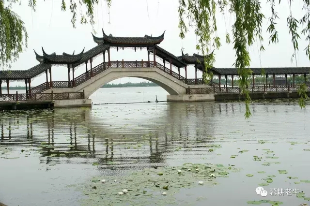 我承认,去锦溪有很大的原因是被那桥勾引的;所以,听寿松老弟说此次他们下乡48周年纪念聚会活动安排到锦溪一游,我是由衷地欢迎的。 ![]() 下榻的农家乐正位于古镇的湖边上。此湖名为陈墓荡,南宋皇妃陈氏为保护南宋第二代皇帝赵昚而中箭病殁、葬于荡北五保湖中,赵昚为爱妃在五保湖畔钦旨建庙为其诵经护坟,此湖即名为“陈墓荡”,连带锦溪镇也有800多年被御旨改称“陈墓”。 从度假村的晒台上就可望见五保湖边上当年为陈墓诵经的莲池禅院。我们到锦溪的这天,老天似乎有意要让我们领略水乡特有的景致,故意隐去了阳光,把一切化为了水墨抹成的图画,木桥、禅院、亭台、楼阁,以及粉墙黛瓦的民舍,都如梦似诗一般,显现出另一番的风致。 ![]() ![]() 出农家乐院门左行数十步,便得一桥,九墩十孔,靠此侧岸边的一孔隆起,为船只通行提供了方便,也让桥有了美学上的变化,确是实用与美学的有机结合,体现了古代人的聪明才智。原来这就是锦溪著名的一景:“十眼桥”。 ![]() 于十眼桥上可以望见湖中的陈妃墓。陈妃墓是水墓,陈妃病殁后,因其喜生前爱锦溪的景色,就在五保湖中修筑水冢,将她埋藏其间,水冢就成为锦溪历史的标志。陈妃水冢四周长满芦草,不管水位多高,水冢总是露在湖面之上。这也是一奇迹。现在,我们就与陈妃墓隔水相望,墓冢掩隐于苍松中,四周长满芦草,只可看得到高耸的石柱牌坊和两个亭子。因无船摆渡,故无法近距离的登临一观,倒也增添了许多的神秘之感。是时,有船摇过,水面荡起了水波,似乎水冢也摇动了起来。 ![]() 锦溪多的是桥,古镇内尚存的古桥有26座,大多为明清时建造的。其中有名的为8座,除十眼桥外还有天水桥、太平桥、锦溪中和双桥、众安桥、溥济桥、普庆桥、里和桥。近些年来,古镇人又他处迁来了一些的石桥,使锦溪简直成了桥的博物馆,比如这座通往莲池禅院的盘亭桥。 ![]() ![]() ![]() 过了盘亭桥就是莲池禅院的所在了,可惜禅院正在修葺中,无法进去一观。正对盘亭桥的有一条有曲形的石埂,将水面划成两片:北侧的为菱塘湾,南侧的为古莲池。菱塘湾边有游船码头,并有数幢临湖的高楼,其一称“碧波楼”,倒也名副其实。此时,天色尚阴,楼宇与倒映于水面,另有一种风情。 ![]() 古莲池边即是勾引我来的那座标志性的桥了,许是因池而得桥名吧,桥名为“古莲桥”,很有诗意的。古莲桥是座景观廊桥,有着独特的造型。桥处锦溪古镇入口,独立于五保湖中央,中间与两端各建有一亭子,亭子四角有飞檐,远远望去如燕子飞掠于湖面。桥之两端各有长廊,左侧正对陈妃水墓,右侧则连着莲池禅院。桥十分的轻灵,无论从哪个角度望之,都是一种美的享受,实在让我难以离开。也许是一边的禅院正在修葺的原因吧,廊桥封闭着,无法上去一走,否则的话,站在桥中央无望湖荡,一定会有心旷神怡的感觉的吧。但这已足够,在这桥边行走,已经身溶于水墨一般的图画之中了。 ![]() ![]() 这样的廊桥在锦溪还不止一座,古镇小广场边上还有一座规模不小的,不知是何时建造的。桥头有亭,四角同样有翘起的飞檐。桥之中央道路略低,可供自行车骑行;两边较高,供人行走。人行走道两边有粗大的圆木擎起,支撑着廊桥的顶篷;人行道与车行道间有木制的花格栏杆,古色古香的。用“长虹卧波”来形容它,是十分的相称的。 ![]() ![]() 两桥间的小广场上,有几幢古建筑,其中一间挂有“丝弦台”的牌匾。查资料得知,“丝弦”的全称是“丝弦宣卷”,是锦溪当地的一种戏曲样式,演奏用的器具主要有二胡、笛子、琵琶、扬琴、古筝、笙等丝弦乐器,故有此称。丝弦宣卷类似于戏曲和评弹,所唱曲目,大多移植于传统戏曲,民间轶事,表演者一般为本地农民。演出时可以上戏台,也可只并排摆开两张八仙桌,正中位置坐一位宣卷艺人,手执醒木或木鱼,右侧坐位伴唱帮腔艺人,左侧坐伴奏艺人。这种戏曲样式很受当地人的喜爱。 ![]() 锦溪近年来在强调保护生态的同时,大力提倡文化兴镇,古镇的文化气息很浓,建有很多的博物馆,有“中国民间博物馆之乡”之称号。可惜我们来此时间太紧,无法去一一领略。 离开小广场我往回走,竟在古莲池边见到了一艘载有鱼鹰的小船,船老大斜坐在船舱里,悠闲地望着四周;鱼鹰则闲立于支在小船边的竹竿上,或理着羽毛或伸着长脖好奇地看着来往的游客。看来他和它们都已经吃饱,没有一丝下湖捉鱼的打算,否则我又能一观鱼鹰捕鱼的情景了。 ![]() 古镇的夜晚又是如何呢?晚饭后,我又去了古镇。好些农家乐已经亮起了灯,但古镇里却灯火不明,没有其他水乡那般入夜时的喧嚣。沿河也只有一些餐饮小店尚有灯光亮着,招揽着生意。老街里有零星的一些铺子还开着,灯光也不亮,远比不止周庄之类的江南水乡。第二天我又来这里,同样是不能用“热闹”来形容,这倒让我觉得它更能符合“水乡古镇”的称号:河道弯曲,穿镇而过;橹桨欸乃,船歌婉转。游客临河而坐,沽酒品茗,怡然自得,是何等的快意! ![]() ![]() ![]() ![]() ![]() ![]() 遗憾的是第二早晨居然下起雨来,原本欲早起观湖上日出的计划被打破,否则定然是另有一番画意的。当然,此时湖景依旧有其魅力,有人已撑出船来,是清理湖面的船工吧。小船划破了水面,也唤醒了湖荡,雨中湖水格外的清明。 ![]() 时近中午,天突然渐渐清亮了起来,我急忙又往古镇里赶,来到禅院的石埂上。