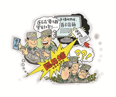 胡三银绘 前不久,火箭军某团一营三连爆出一条“新闻”:连队被举报了! 举报者不是别人,正是连队“自家”的战士张林。 要说这事还真不小,举报信越过连、营、团,直接到了基地首长的政工网信箱。 “这还了得!”连队干部急得团团转。 “首长不早就说过‘欢迎来信’吗?”张林理直气壮。 团机关工作组很快进驻连队,真相随之水落石出。 原来,三连王连长考虑到在工作中与连队干部骨干接触比较多,大家经常讲工作、聊生活、唠家常,于是提议建一个微信“骨干群”,得到骨干们一致赞同,王连长自然被推举为“群主”。 起初,连队骨干在群里晒晒照片、秀秀幸福,分享些体会感悟、生活轶事、心灵鸡汤等等,也没有引起其他战士太多的注意,顶多就是大家茶余饭后的谈资罢了。 一次,团里召开正规化管理座谈会,团领导点名表扬三连:连队虽然远离机关单独驻防,但训练管理科学正规、井井有条,官兵精神状态好、完成任务好…… 连长、指导员回到连队后,马上召集连队骨干传达会议精神,大家听后心里美滋滋的。散会后,王连长意犹未尽,恰好当时是手机使用时间,于是在“骨干群”里带头发了一个10元钱的红包,留言“同志们辛苦了”。大家也接龙似的你一元我两元,玩得不亦乐乎。 “班长,玩啥呢?这么嗨!”看到班长王伟乐呵呵地不停戳手机,战士张林凑了过去。“抢红包呢!”王伟头也没抬。 看着班长爱搭不理,张林心里不由有些“小失落”。私下里,他与班里战友聊起这件事,没想到,大家对此早就有看法:“连队为啥不拉我们入群?”“一个连的兵咋还分亲疏远近?”“这不把我们和连队骨干隔开了吗?”…… “骨干群”成了“离心墙”,多少让连队骨干始料未及,更让他们意想不到的是,张林竟通过政工网兵情热线,把事情捅到了基地首长那儿。 严格来说,这不是一封举报信,而是一封建言信。张林在信中写到:“尊敬的首长,我是通信团一营三连战士张林,我们连有个‘骨干群’,虽然平时便于连队骨干们沟通交流、深化感情,但无形中却拉开了他们与连队其他官兵之间的距离,我觉得这也是一种离兵现象……” 事情真相大白。了解原委的工作组回到机关后,没有上纲上线打板子,而是交由连队自己处理。连队骨干进行了深刻的检讨反思和广泛的讨论交流,有人认为:建了一个群,寒了不少战士心,这样的群应该取消。有人力挺:“骨干群”是一个很好的辅助手段和交流平台,不能因噎废食。讨论过后,意见趋向一致:大家反对的并不是微信群本身,而是因为“骨干群”导致的官兵关系疏远。 随后,三连“连队群”应运而生,全连官兵纷纷主动入群,分享训练、学习、生活中的喜怒哀乐和成长点滴,时不时发个表情包,好心情一起共享,烦恼事共同分担,“连队群”已然成了连队“加油站”。同时,“骨干群”也更加“红火”,通过“连队群”掌握了解官兵思想动态后,骨干们在群里畅所欲言、建言献策,提高了连队管理效率。“大群”连着“小群”,群里群外其乐融融,官兵关系更和谐更紧密了。 莫要那边建起群,这边脱了群 火箭军某团政委冯晓永 没想到一个“骨干群”却照出了心理距离,无形中疏远和冷落了战友感情。细思之,战士“举报”这个群,本意并不在于“散群”,而在于“入群”;他们不排斥“小群”,却排斥“脱群”。 莫要那边建起群,这边脱了群。在部队建设中运用“互联网+”思维,借微信群等新型社交网络走近青年官兵,倾听兵言兵声,了解兵心兵事,这本是好事。但好事就当办好,倘若考虑不周、方法不当,把微信群建成“私有领地”甚至“小圈子”,在官兵之间人为立起“隔离板”“离心墙”,则会收到反效果、产生负能量。
