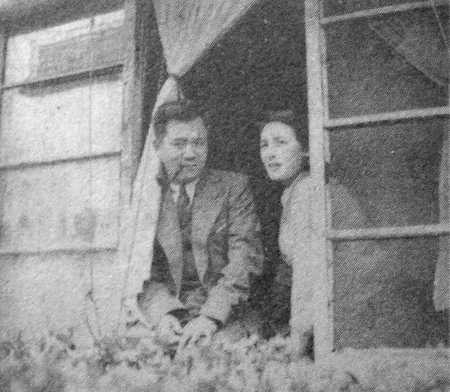 1947年,萧乾与夫人格温在徐汇村(今复旦第二宿舍)平房,据说窗前的花是格温亲手栽种的
