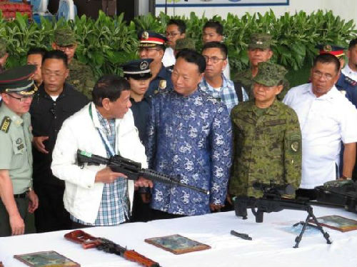 交接仪式上,杜特尔特兴致勃勃地端起一把中国产狙击步枪瞄准的新闻图片,被菲律宾网友热传。 这也提醒人们,该国的反恐形势依然严峻。据菲律宾《商报》28日报道,菲南部的反恐战事还在持续,而包括马尼拉国际机场在内4个机场已提至红色安全警戒。