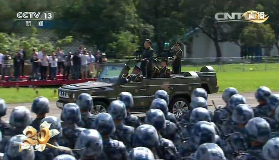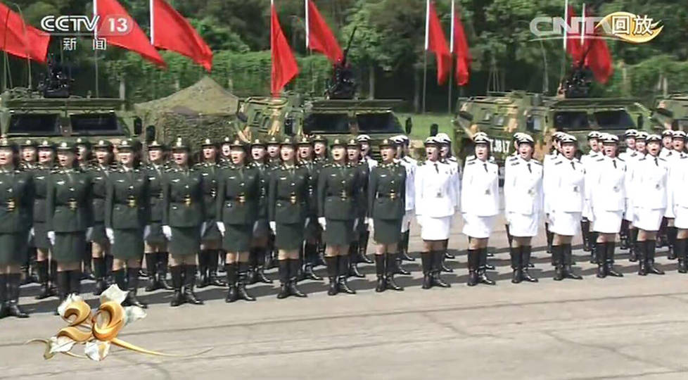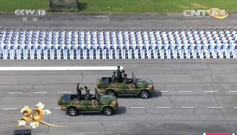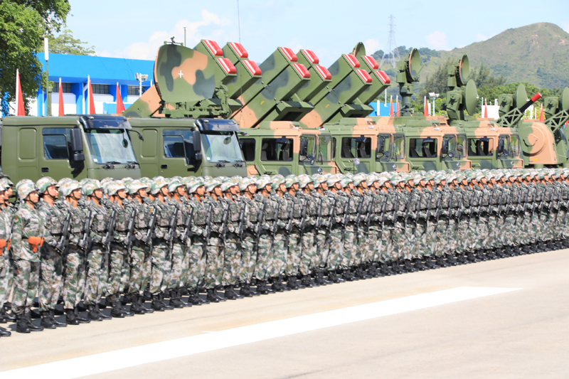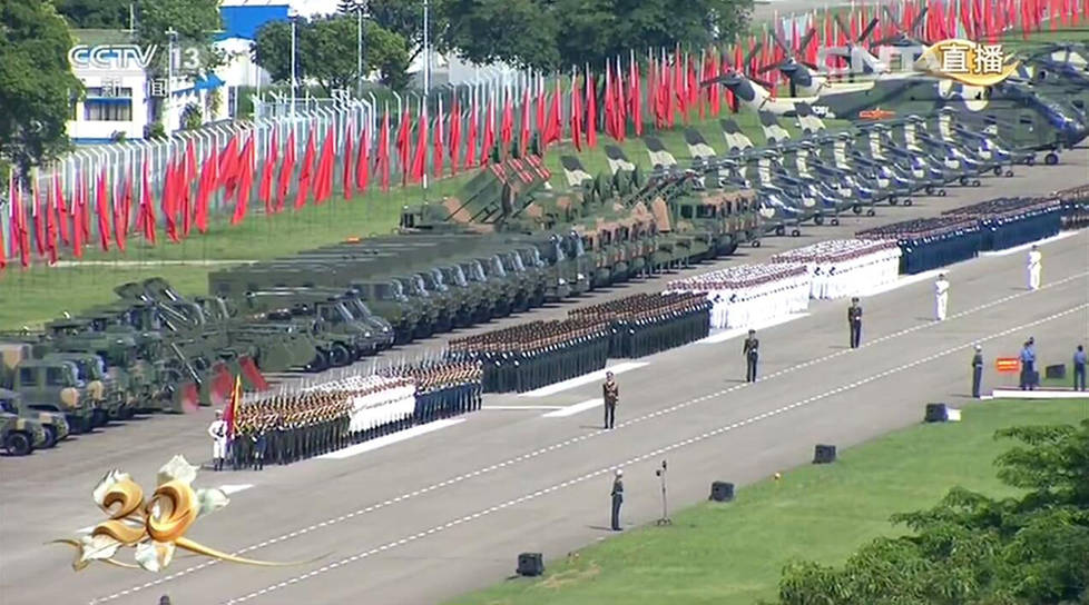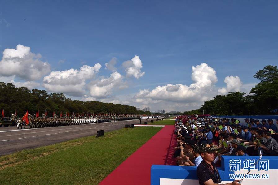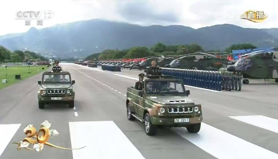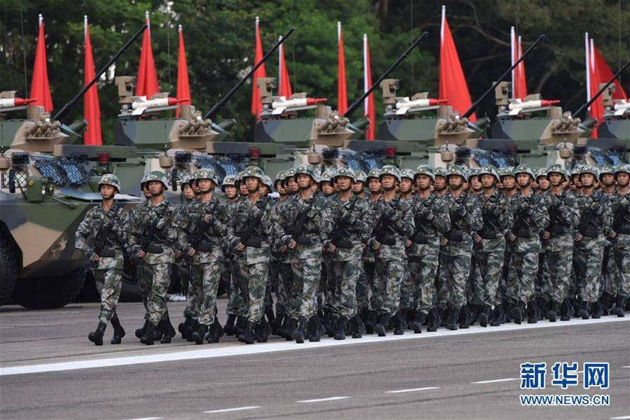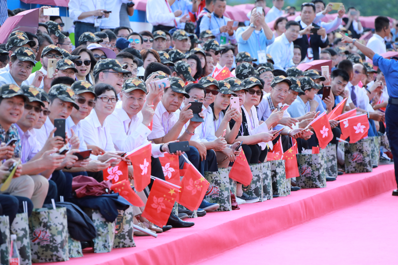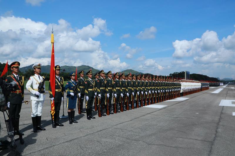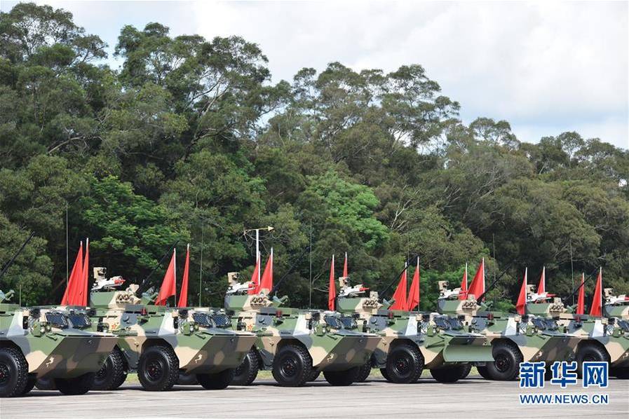 另据新华社,3100余名官兵、100多件武器装备,组成20个方队接受检阅。来自香港各界的4000余名嘉宾现场观礼。 |