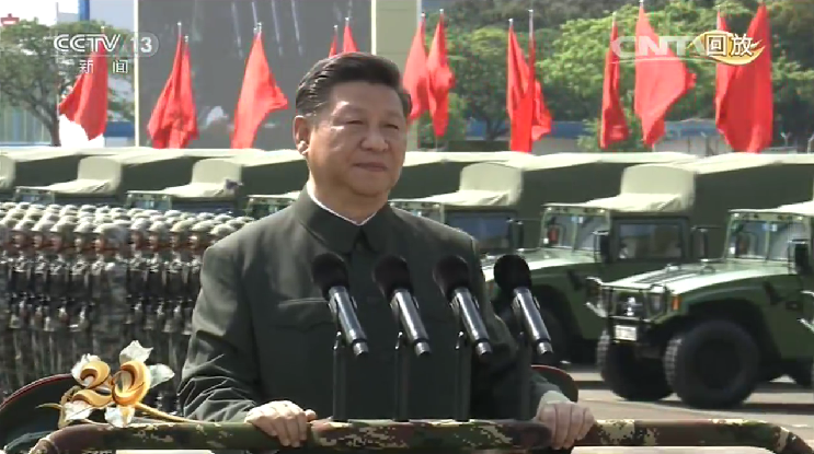驻香港部队司令员谭本宏敬礼报告:“主席同志,中国人民解放军驻香港部队受阅部队列队完毕,请您检阅。”习近平指示:“开始!” 在雄壮的阅兵曲中,习近平乘车依次检阅驻香港部队军乐队、三军仪仗队等20个方队。3100余名受阅官兵军容严整、意气风发,防空导弹、轮式战车、武装直升机等武器装备整齐列阵、威风凛凛。“同志们好!”“主席好!”“同志们辛苦了!”“为人民服务!” 习近平的亲切问候鼓舞士气,官兵们的响亮回答声震长空。观礼台上不时响起热烈掌声。