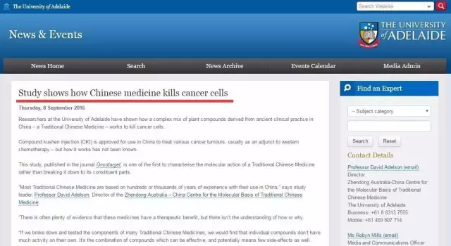 国际肿瘤研究领域的著名学术期刊《癌症快报》(Cancer Letters)刊登了复方苦参注射液能够有效治疗癌症疼痛,减轻癌症患者痛苦的研究成果。研究表明,该药同时还能抑制肿瘤增值,是中药注射液用于肿瘤治疗研究的重大突破。事实证明,中国医学的崛起已势不可挡! 复方苦参注射液,获准治疗各种癌症肿瘤 墙内开花墙外香! 日前,澳州阿德莱德大学科研团队, 在世界权威学术周刊《肿瘤学目标》上发表重大研究成果! 科学家宣布, 终于研究清楚中国传统医学使用中草药治疗癌症的复杂机制! 中国中医中草药复方苦参(Compound kushen injection,CKI)在杀死癌细胞方面有奇迹般的效果。 研究人言发现, 复方苦参注射液能够改变控制细胞内部分裂和死亡的基因, 并且改变细胞循环使癌细胞变成死亡细胞, 也就是杀死癌细胞。 阿德莱德大学的这一项最新研究, 证实传统中医能够杀死癌细胞。 ![]() 在中国, 复方苦参注射液(Compound kushen injection, CKI)获准治疗各种癌症肿瘤, 通常是作为辅助西方医学的化疗。 但是,尽管已验证了这种药物的功效, 但其抗癌原理一直是个谜! 这次研究是全球对复方苦参进行的首次研究, 而且重点是其分子杀死癌细胞的运作原理, 而不是分析它的成分。 研究负责人David Adelson指出: “大部分传统中草药的使用是基于中国人千百年来的传统经验。 有大量证据都证明中草药在一些疾病的治疗过程中确实有疗效, 但没有人知道原理。” ”经过我们的研究, 我们可以确认中草药在杀灭癌细胞上有显著功效, 这是非常神奇的,非常令人惊讶”! 2、复方苦参注射液治癌机理在于: 能够调节癌细胞的分裂和生存周期 这一研究由研究人员发表在国际医学杂志《肿瘤标靶》(Oncotarget)上, 证实了传统中医中的复方苦参注射液能够引起基因表现类型的变化, 而且复方苦参注射液还可以作用于类型不同的癌细胞中的各种基因。 Adelson教授解释说, 这些基因能够调节细胞的分裂和生存周期, 中药方似乎改变了正在调节中的细胞周期, 促使癌细胞朝着死亡的途径上发展, 进而最终杀死癌细胞。 据了解, 复方苦参注射液是传统中医中有名的治疗方法, 所含药物由苦参和白土苓根部提取, 而且包含多种化学成分, 包括生物碱,例如苦参碱(matrine)、 氧化苦参碱(oxymatrine)、 黄酮类(flavonoids)等。 中医配方将会为西方医学界攻克癌症提供新的解决思路! 像其他传统中医一样, 复方苦参注射液的单独成分并不会产生杀死癌细胞的效果, 而混合在一起之后, 它就能治疗多种癌症, 而且潜在的人体副作用也大大减小! ![]() 这项最新的权威科研成果在全球医学界的引发巨大反响! 诺贝尔医学奖得主Harald zur Hausen, 他在看到这个伟大的研究成果后, 也发表声明称中医在治愈癌症上会有显著的效果! 中国医学博大精深,是巨大财富, 需要不断探索,标准化,科学化! 一股中草药热潮席卷欧洲, 美国、加拿大、澳州…… 随着各国科研人员进一步对中医中草药的进一步研究, 我们有理由相信, 这种全新的中草药抗癌神药一定会上市! 届时,全世界数千万的癌症患者, 都可以告别痛苦的西方化疗! 受益于这一神奇的中草药神药! 中国医学崛起已势不可挡 ! (责任编辑:晓歌) |
