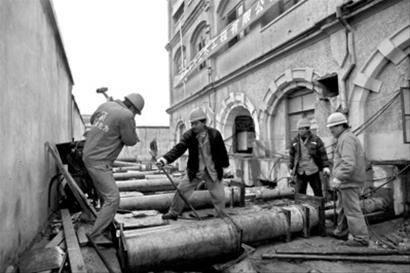 大洋房的平移也分为两个阶段,第一阶段向南平移36.1 米,第二阶段再向东平移3 米,并整体顶升0.9米。虽然这时候的建筑平移技术已经十分成熟,但大洋房当时平均每天只能移动4米左右。
