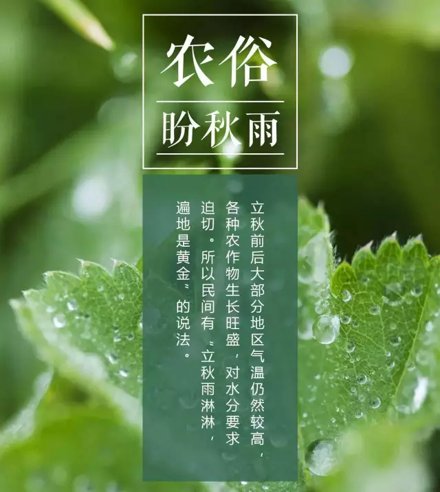 明日立秋, 全家一定要这么吃, 保你百病全消, 一年不生病!值得收藏转发! 立秋简介 立秋 ![]() 2017年立秋时间 8月7日 15:39:58 农历 六月(小)十六 立秋,是农历二十四节气中的第13个节气,更是秋天的第一个节气,标志着孟秋时节的正式开始。 中医提出:立秋要养生重在祛暑、养肺、护肝。那要如何做好?小编与你分享秋季养生之道,严防“秋老虎”,守住健康。 立秋养生! 保您全家平安健康! 先收藏,再群发,功德无量! 立秋习俗 农俗盼秋雨 食俗贴秋膘 民俗悬秤称人 立秋养生食物 立秋易多吃”防燥不腻“食物 具有这类作用的食物有茭白、南瓜、莲子、桂圆、黑芝麻、红枣、核桃等 ![]() 患有脾胃虚弱、消化不良的人,可以服食具有健脾补胃的莲子、扁豆、山药等 在饮食上要“增酸” 以增加肝脏的功能,抵御过盛肺气之侵入。下列食品可供选择 防秋燥伤阴 以增加肝脏的功能,抵御过盛肺气之侵入。下列食品可供选择 按照《黄帝内经》提出的“秋冬养阴”的原则!防秋燥伤阴。下列饮食可供选择 立秋饮食八字诀窍 润燥、补肺、养阴、多酸。 润燥首选莲藕 ![]() 秋季出现口感唇焦等“秋燥症”的气候,应选用滋养润燥、益中补气的食品,首选是莲藕。莲藕好处多,食用方法“生熟两相宜”。莲藕作为水果生吃,味道甘甜、清凉入肺;莲藕和糯米、蜂蜜一起蒸,粉红透明,软糯清润,是秋令美味小菜;莲藕和排骨炖汤,健脾开胃、营养丰富,适合脾胃虚弱的人滋补养生; 补肺首选杏仁